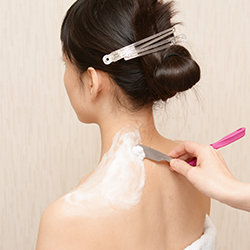 成人式の振袖や結婚式での留袖など、着物や浴衣を着る前におすすめの和装シェービングのコースです。襟足周りの産毛をきれいに整えることで和服映え抜群のうなじ美人に仕上げます。