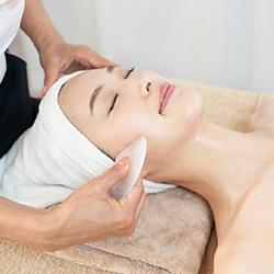 かっさによるケアと顔剃りを組み合わせた人気メニュー。滞りがちなラインを心地よく整え、スッキリした表情へ。コラーゲンパック付きで、潤いと癒やしを同時に届けます。